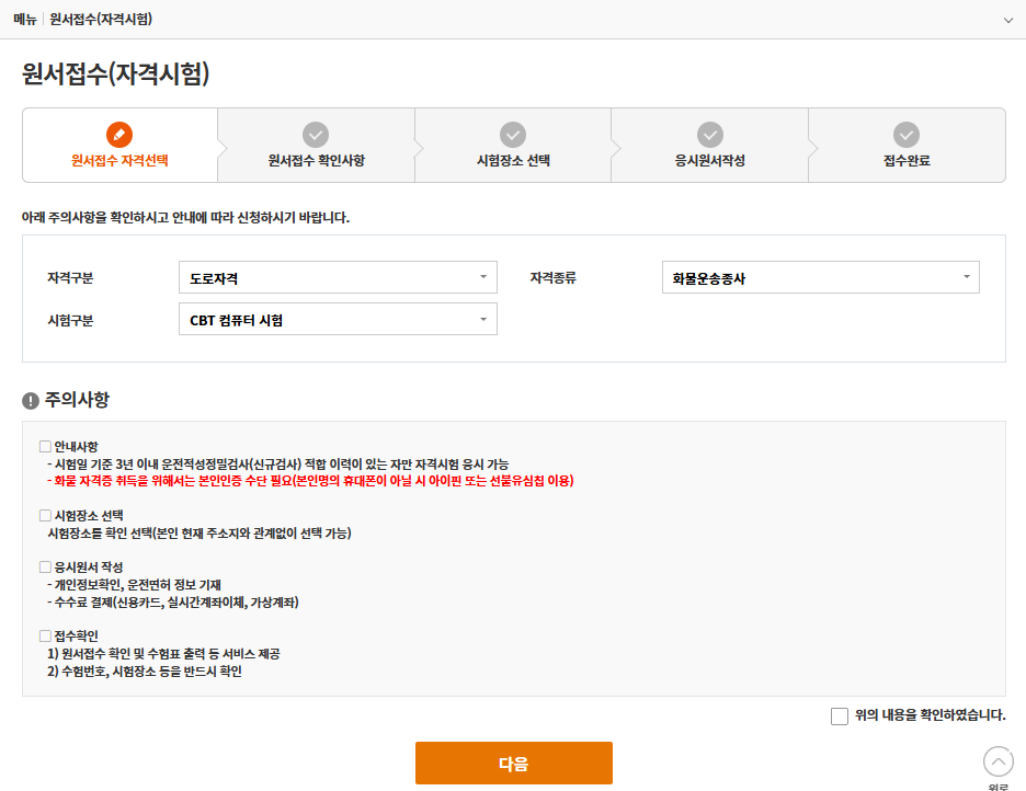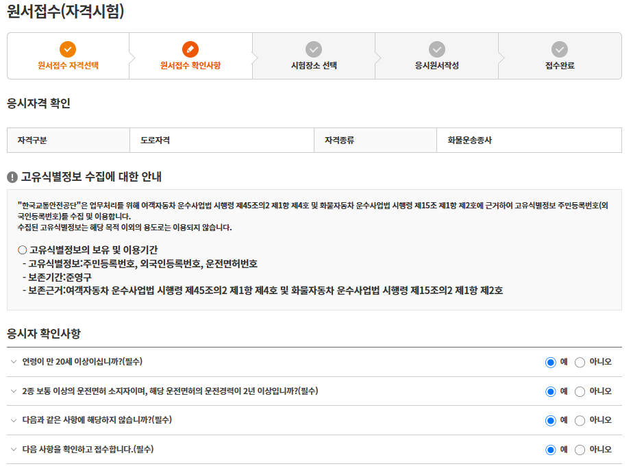 화물종사 자격시험 접수 방법