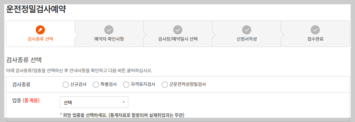 - 일반검사 / 고위험군 검사 / 고령운전자 검사 등