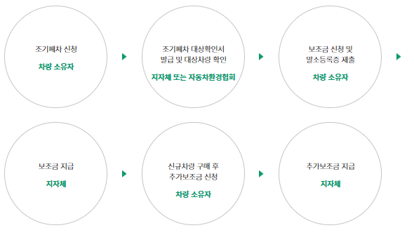 - 지자체 홈페이지나 한국자동차환경협회에서 조기폐차 공고 확인
