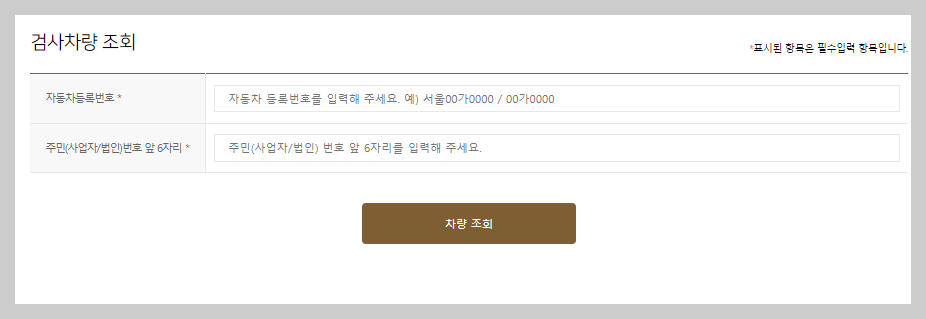 Q. 자동차검사기간 조회하기 위해 차량번호 외에 다른 정보가 꼭 필요한가요?
