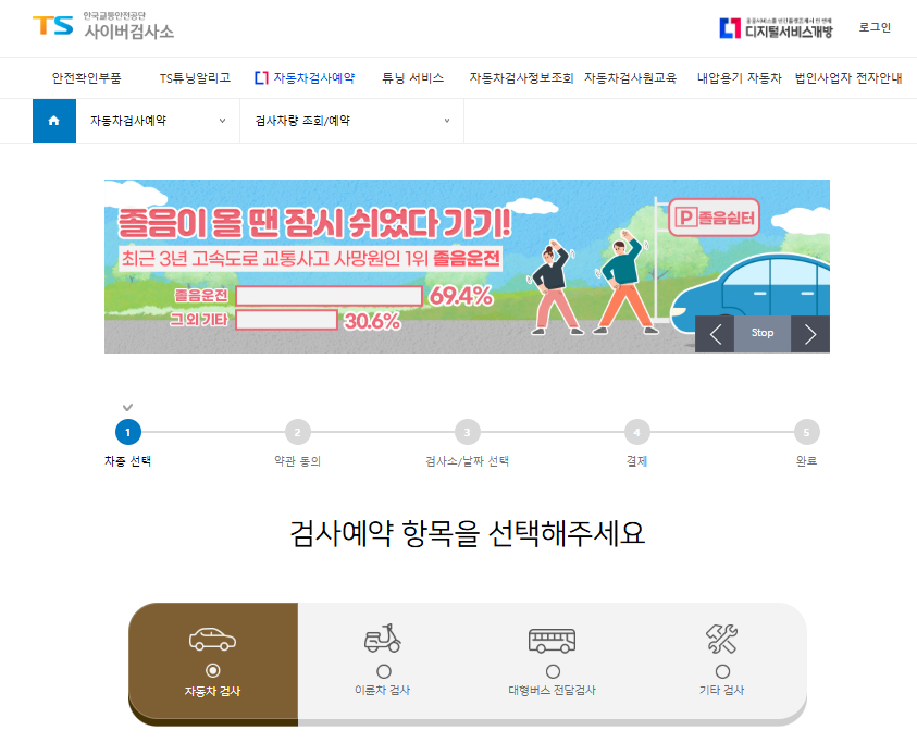 1. 한국교통안전공단 사이버검사소 홈페이지에 접속합니다.